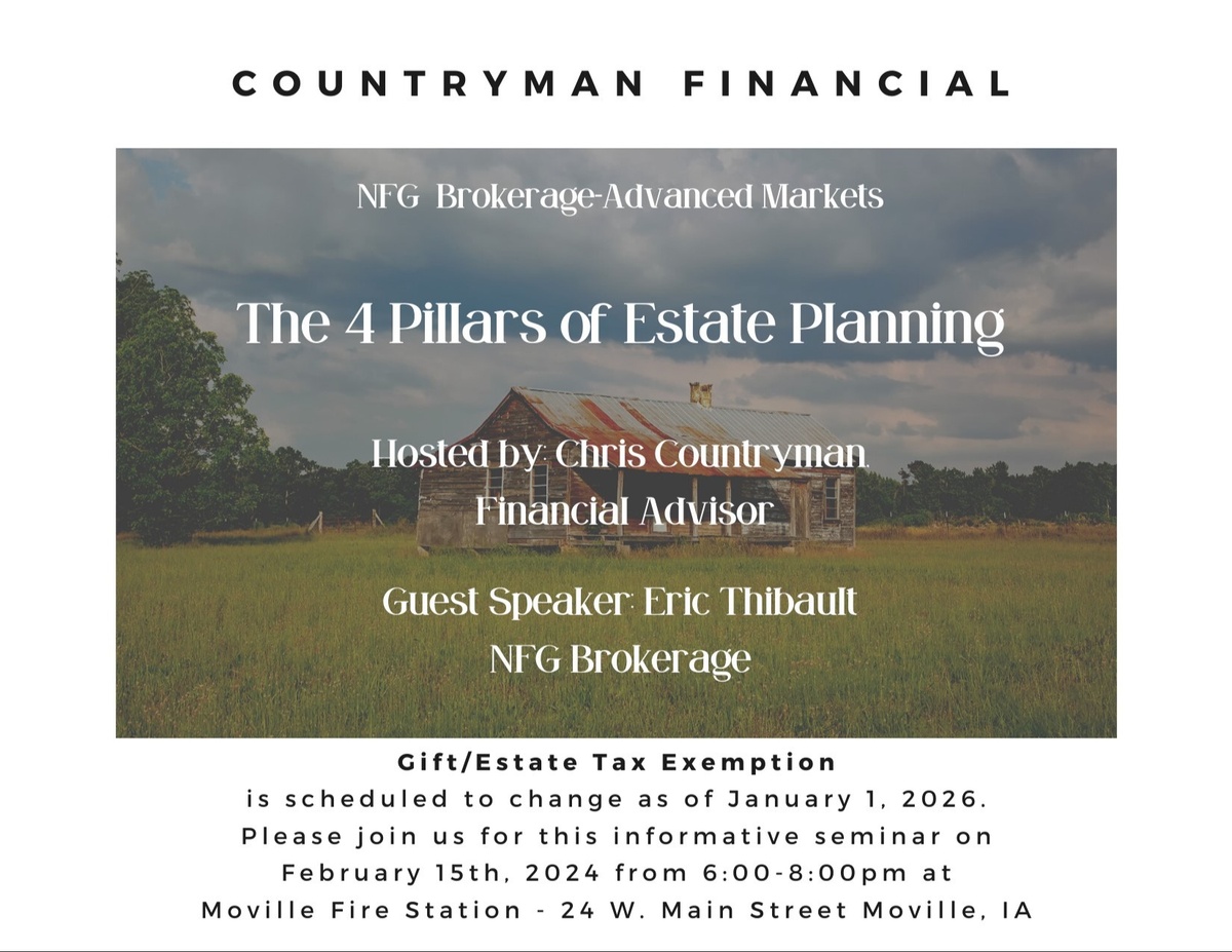Please join us for this informative seminar regarding estate planning on February 15, 2024 from 6-8 PM at the Moville Fire Station.